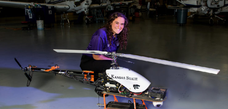 Along with studying both UAS degree options at Kansas State Polytechnic, Edmonds is a data processing assistant in the Applied Aviation Research Center on campus whose projects generally involve UAS. She also is a flight instructor for her underclassmen and served as president of the UAS student club before securing her two NASA internships.