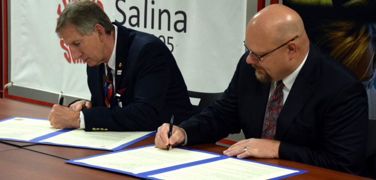 Salina Tech President Greg Nichols and Salina Schools Superintendent James Hardy signed an agreement Friday morning formalizing the new pathway; it has already been approved by Salina Tech’s Board of Trustees and the Salina Board of Education.