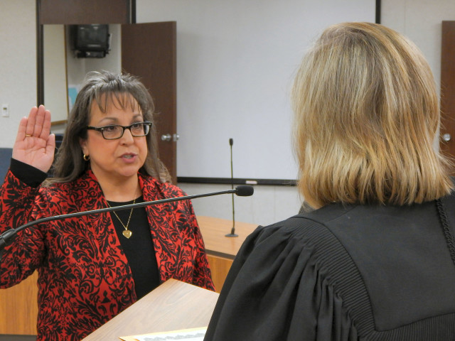 - Luci Larsen is sworn in as a county commissioner.