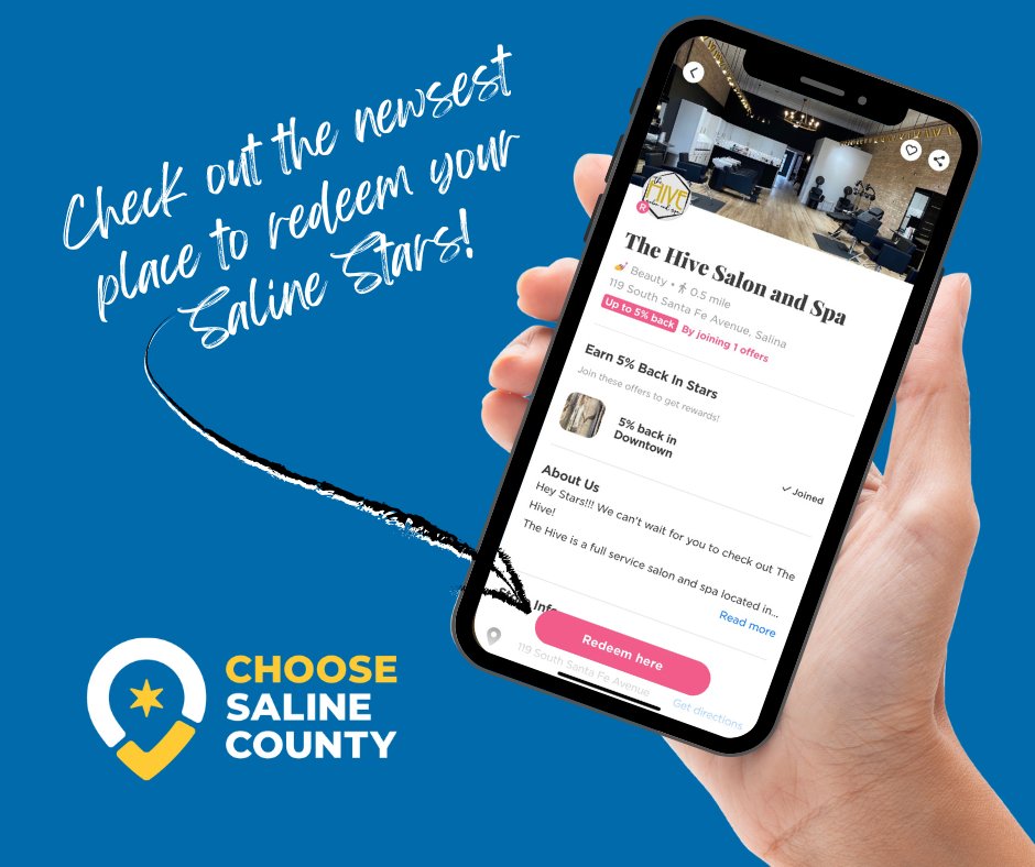 The Choose Saline County App was designed with a vision to create a platform that makes it easy and rewarding for you to explore, shop, and dine locally. Thanks to ARPA funding, we’ve amplified your efforts in supporting local businesses and providing our community members with tangible rewards for their loyalty and patronage.
