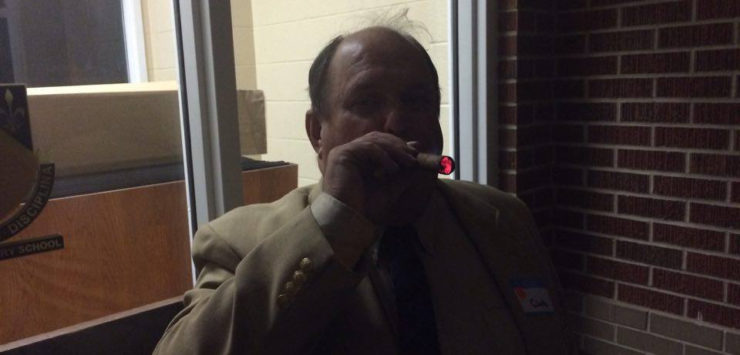 Following the meeting, Sanders stepped outside to smoke a cigar. It was a cigar he had been given while in Tampa, FL attending the 2012 Republican National Convention as one of 40 delegates from Kansas. He brought it home and said he would smoke it when a Republican was elected President of the United States. “Obviously, I had hoped to smoke that cigar in November of 2012,” he commented, but “It tastes just fine tonight.”