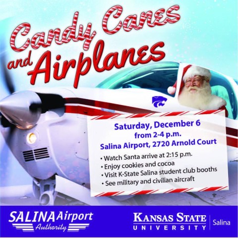 While he is in town, K-State Salina and the Salina Regional Airport will throw a welcome party fly-in and open house for the Jolly Ol’ Elf and the good boys and girls of Salina and the surrounding area, Dec. 6 at 2 p.m. at the Salina Airport’s Hangar 600 located at 2720 Arnold Ct. Doors open at 1 p.m.