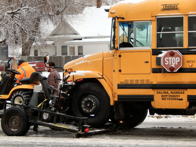 A Salina USD 305 school bus was involved in a minor crash on a slick street early Thursday morning.