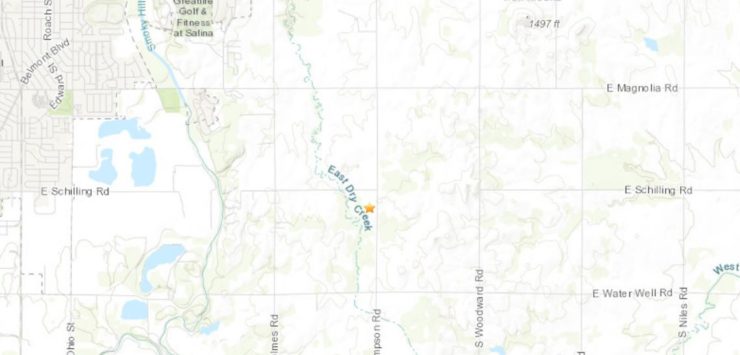 According to the United States Geological Survey, an earthquake measuring 2.7 on the Richter Scale was recorded at 10:24 PM. The earthquake was centered about 5.5 miles southeast of Salina. The earthquake was at a depth of 6.2 miles. It originated just south and west of the intersection of Schilling and Simpson Roads.