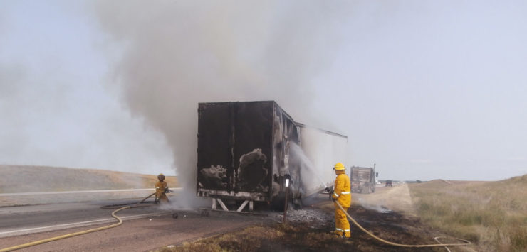 Robin Reeve, 63, of La Salle, Colorado felt a shake in his vehicle while driving and checked his mirrors. The right side front tires of the trailer he was hauling were loose, and by the time he was able to stop the vehicle, the back tires and right side door to the trailer were on fire.
