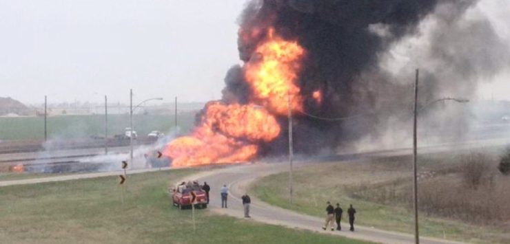 The McPherson Police Department reported that the truck was pulling a tanker hauling diesel fuel, or oil. The McPherson Fire Department needed to let the fire burn due to personnel safety.