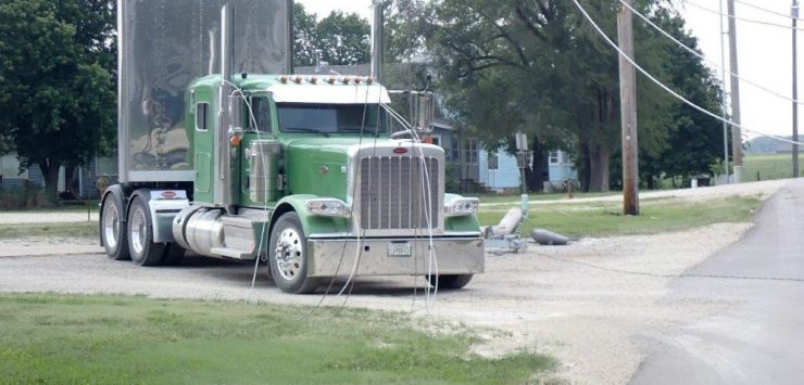 Saline County Sheriff Roger Soldan tells KSAL News that a 38-year-old driver for Unruh Transport of Galva was turning around in the 7300 block of E. Schilling when the trailer on his 2021 Peterbilt became entangled in the wire and snapped the pole.
