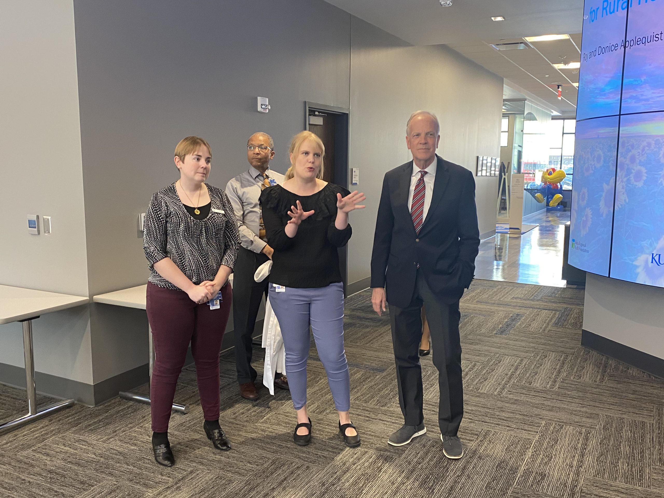 U.S. Sen. Jerry Moran (R-Kan.) made his first visit to the new University of Kansas Salina Health Education Center, 138 N. Santa Fe Ave. Hosting Moran were two medical students giving the senator the tour of the new facilities. Also in attendance were Salina Mayor, Dr. Trent Davis; Dr. Robert Moser, Dean, KU School of Medicine-Salina; and Lisa Larson, Ph.D, RN, Dean, KU School of Nursing-Salina.