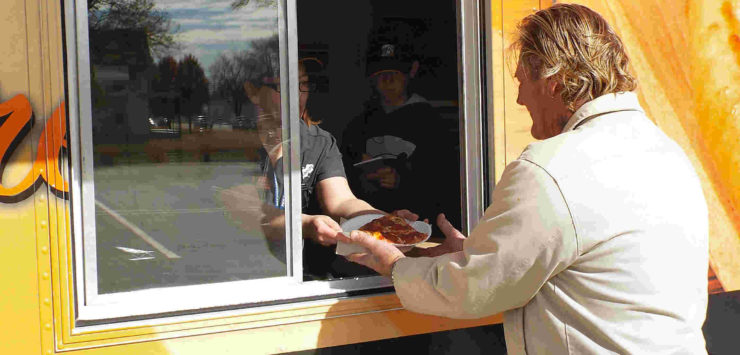 Salina Little Caesars owner Tom Perrin and a group of volunteers were prepared to serve a free lunch from inside the one-of-a-kind mobile kitchen for several hundred people.
