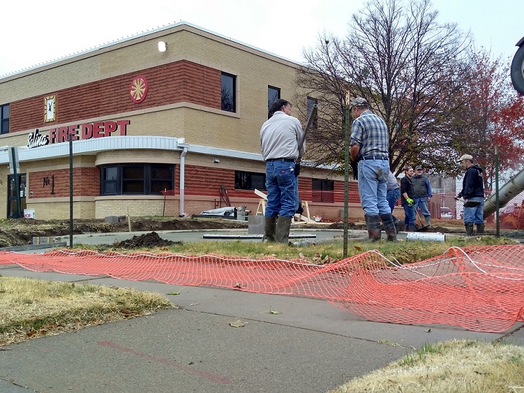 Crews were pouring and finishing concrete Tuesday morning at Salina Fire Station Number 1 on a Tribute Plaza that has been in the works for months.