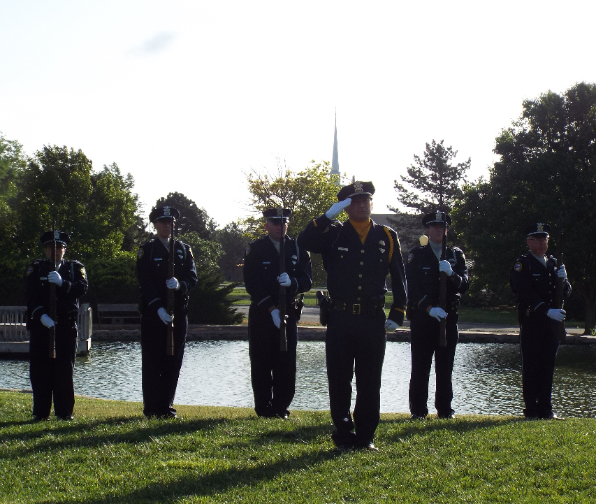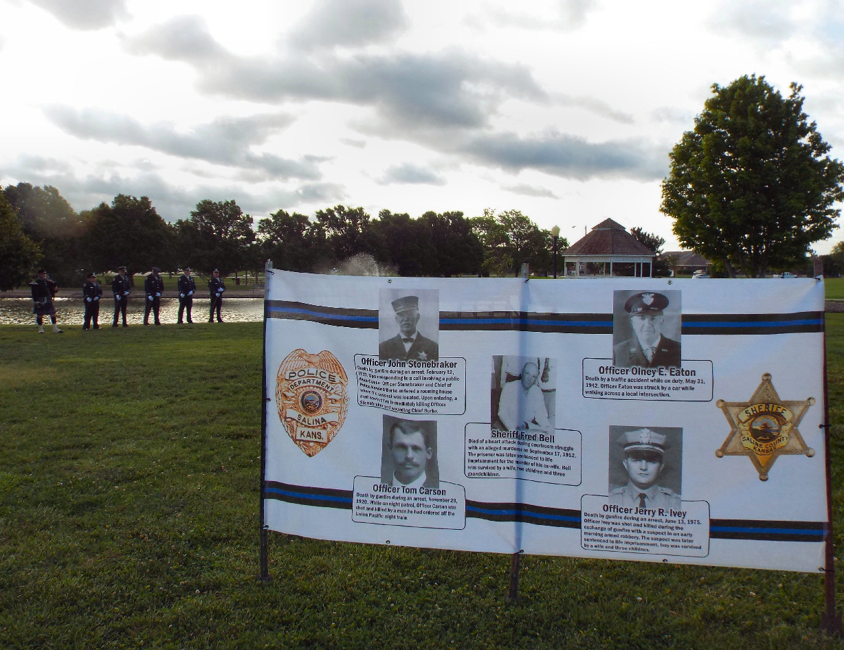 The ceremony featured a roll call of the Salina Police Officers, Kansas State Troopers, and the sheriff killed in the line of duty in Saline County. It also included speakers, the playing of “Taps”, the playing of “Amazing Grace”, and a 21 gun salute.