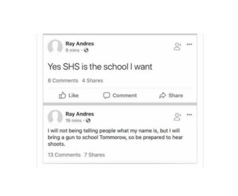 A social media post making its way around Facebook caught the attention of people across the country Wednesday, including in Salina. The post threatened a school shooting, citing “SHS.”