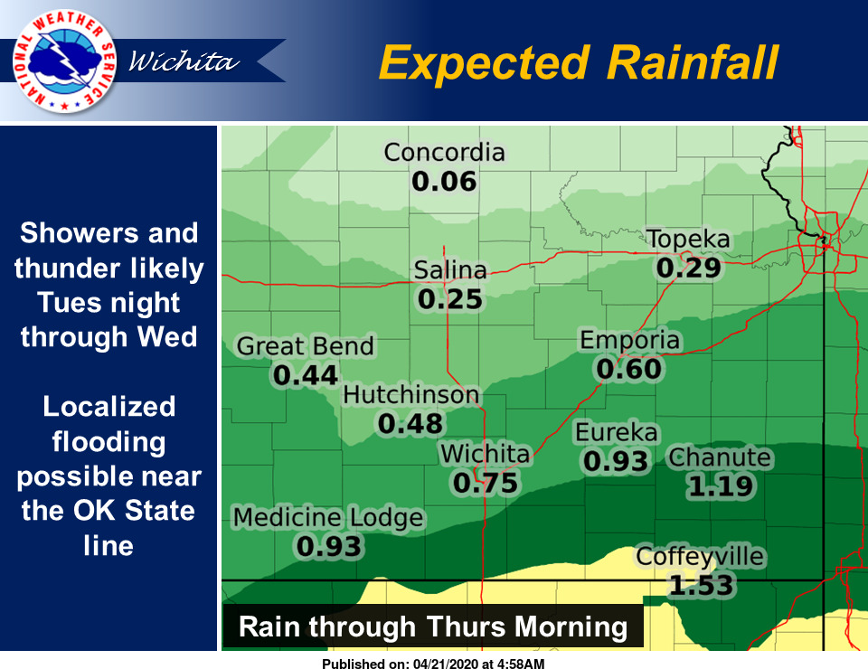 Storms are expected to fire up around 10 p.m. Tuesday in west-central Kansas, before potentially moving in to the KSAL listening area after midnight.