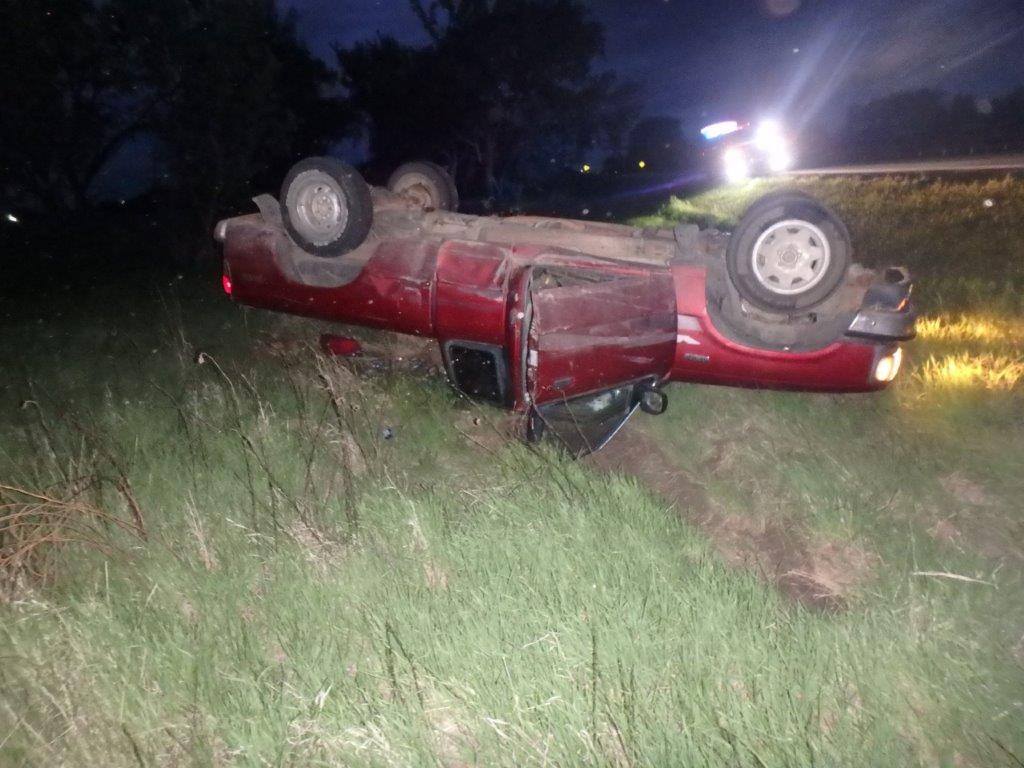 A 1997 Mazda B-2300 pickup truck was traveling westbound on Old 40 Highway when the truck drifted off the edge of the roadway on to the shoulder. After over correcting, the truck then crossed over the center line and rolled in to the south-side ditch, landing on its roof.