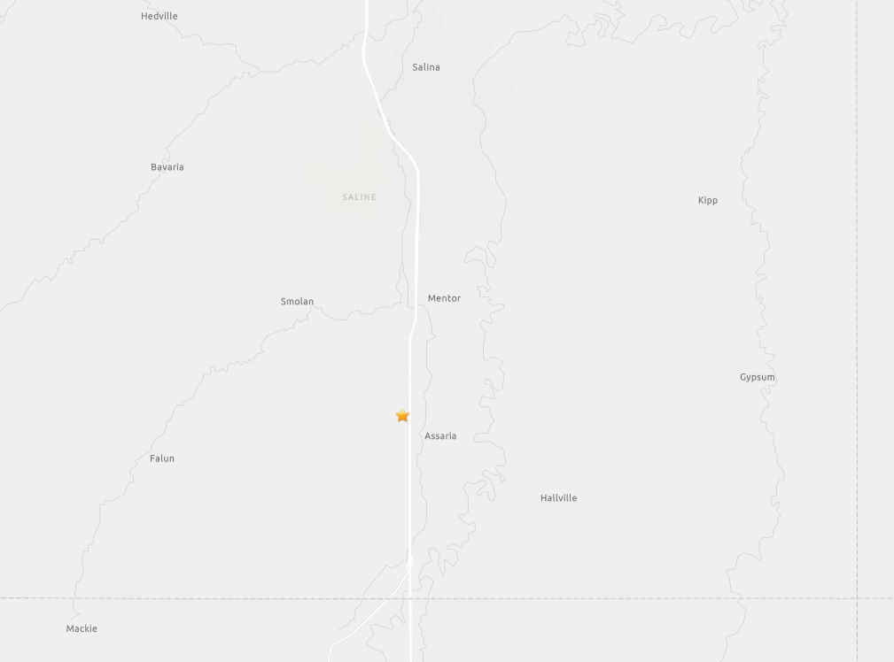 According to the U.S. Geological Survey. a 2.7 magnitude quake was recorded about a mile west northwest of Assaria, near the Elite Sports Paintball Center along Interstate 135 shortly after 2:00 in the afternoon.