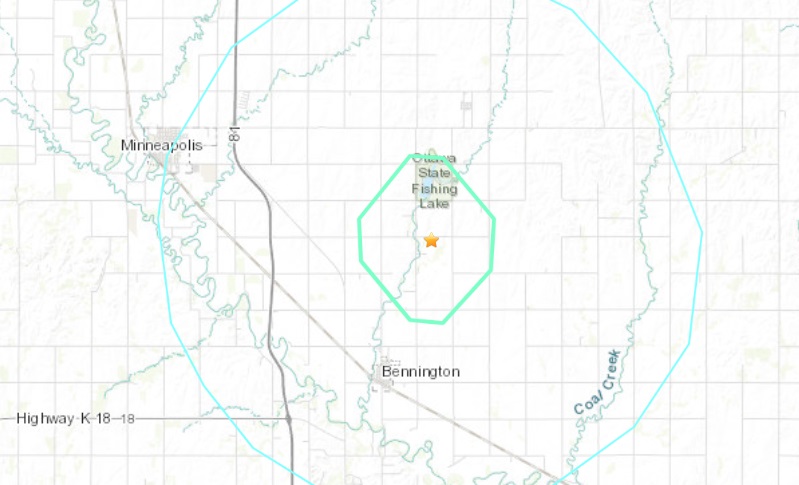 The U.S. Geological Survey says a small earthquake was centered near the Ottawa County community of Bennington. According to the agency a magnitude 3.7 earthquake was centered about 3.7 miles north northeast of Bennington.