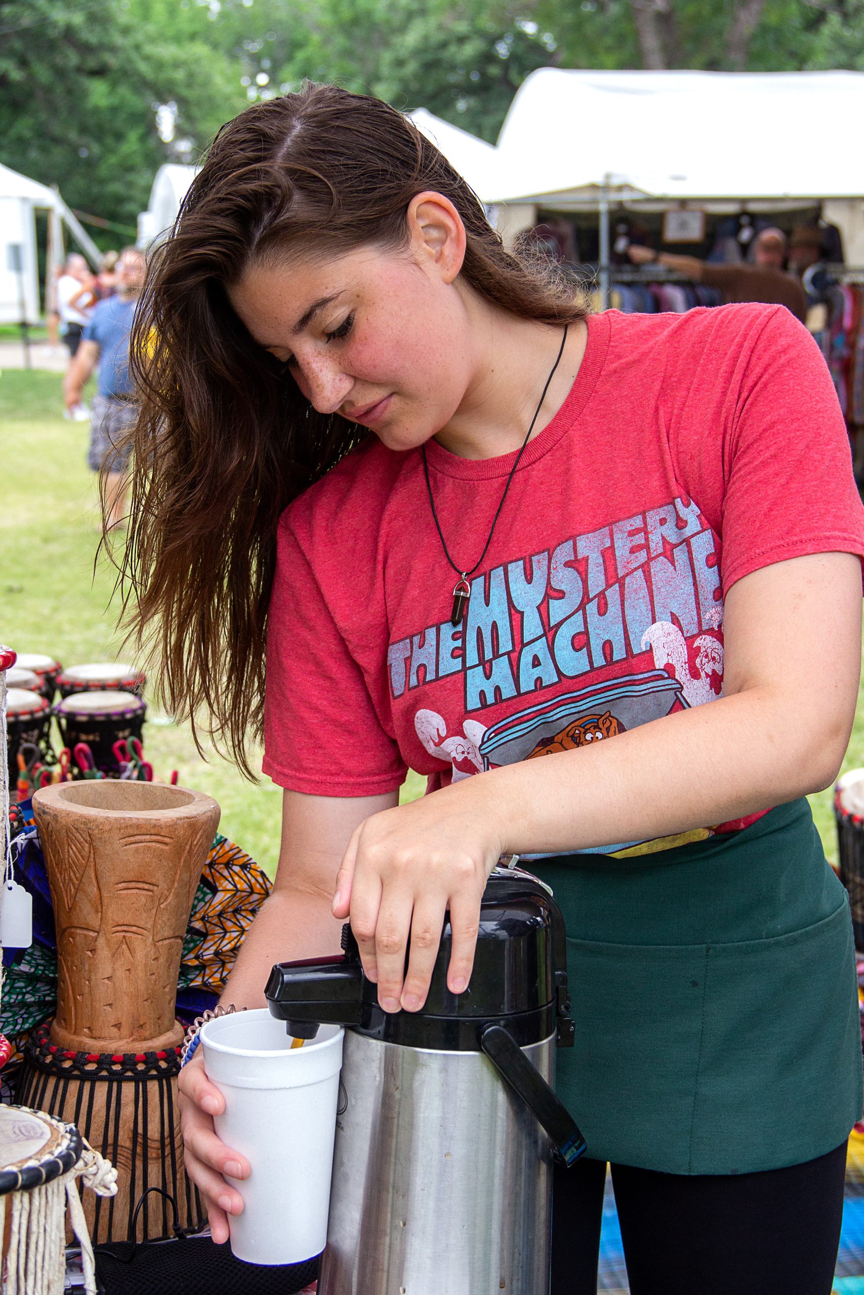 Volunteers serve two or three-hour shifts, typically working outdoors in the shade. They assist for a shift and stay to enjoy the Festival.