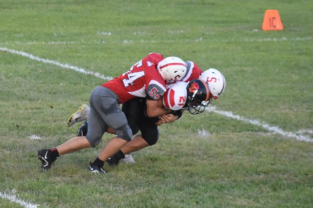 Three more touchdowns were added in the ensuing period. Hynes ripped off a TD run of 22 yards. Dylan Johnson ran 13 yards to the goalline and fumbled, recovered by Lucas Newcomer. Spencer Krause wrapped up the scoring with a three-yard TD pass to Kolten Walker.