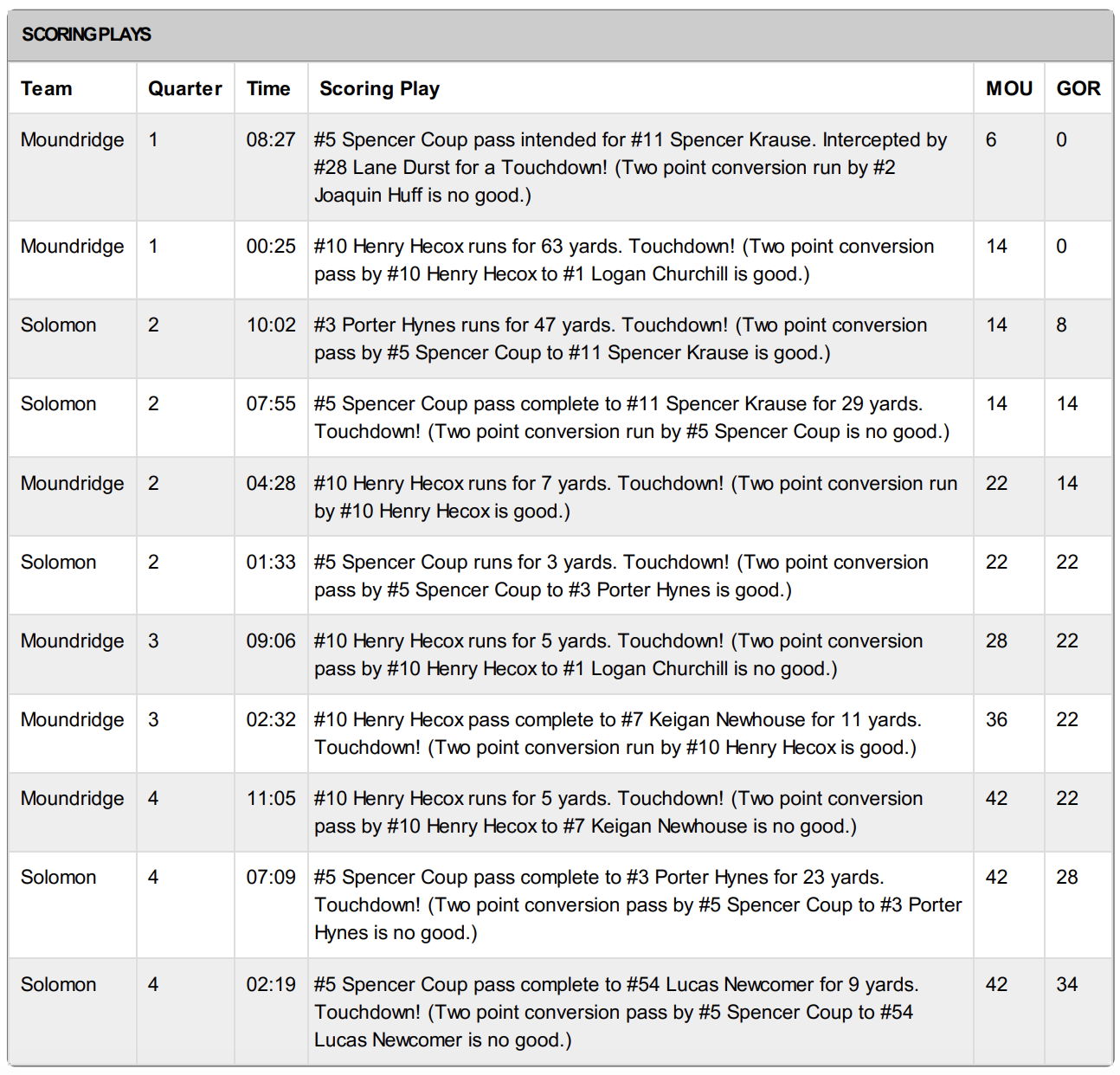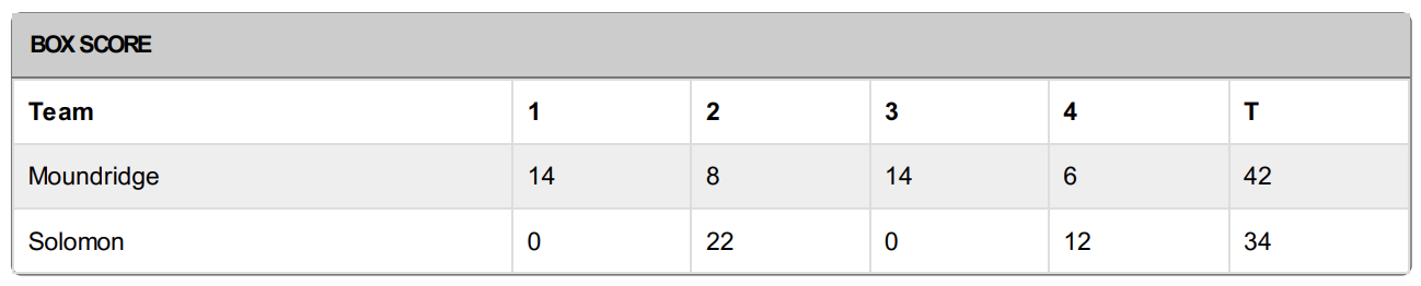 The Solomon Gorillas dropped a tough one on Friday night to the Moundridge Wildcats, 42-34. The loss drops Solomon to 2-4 overall and 0-3 in district play. Moundridge improved to 3-3 and 2-1 in districts with the win.