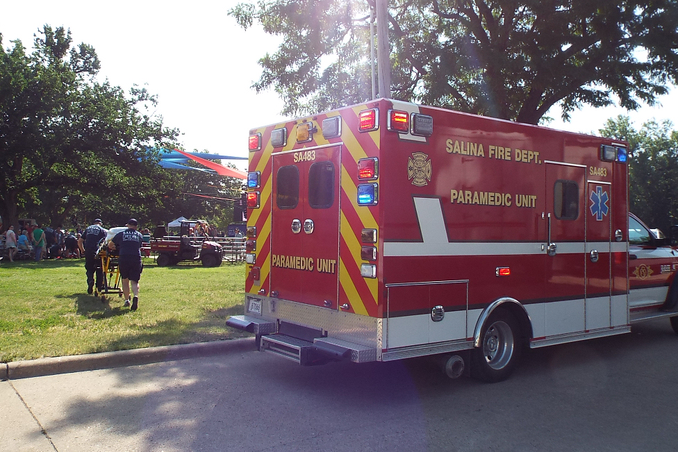 Medical professionals on scene administered first-aid until Salina EMS arrived and took over. The victim was transported to Salina Regional Health Center.