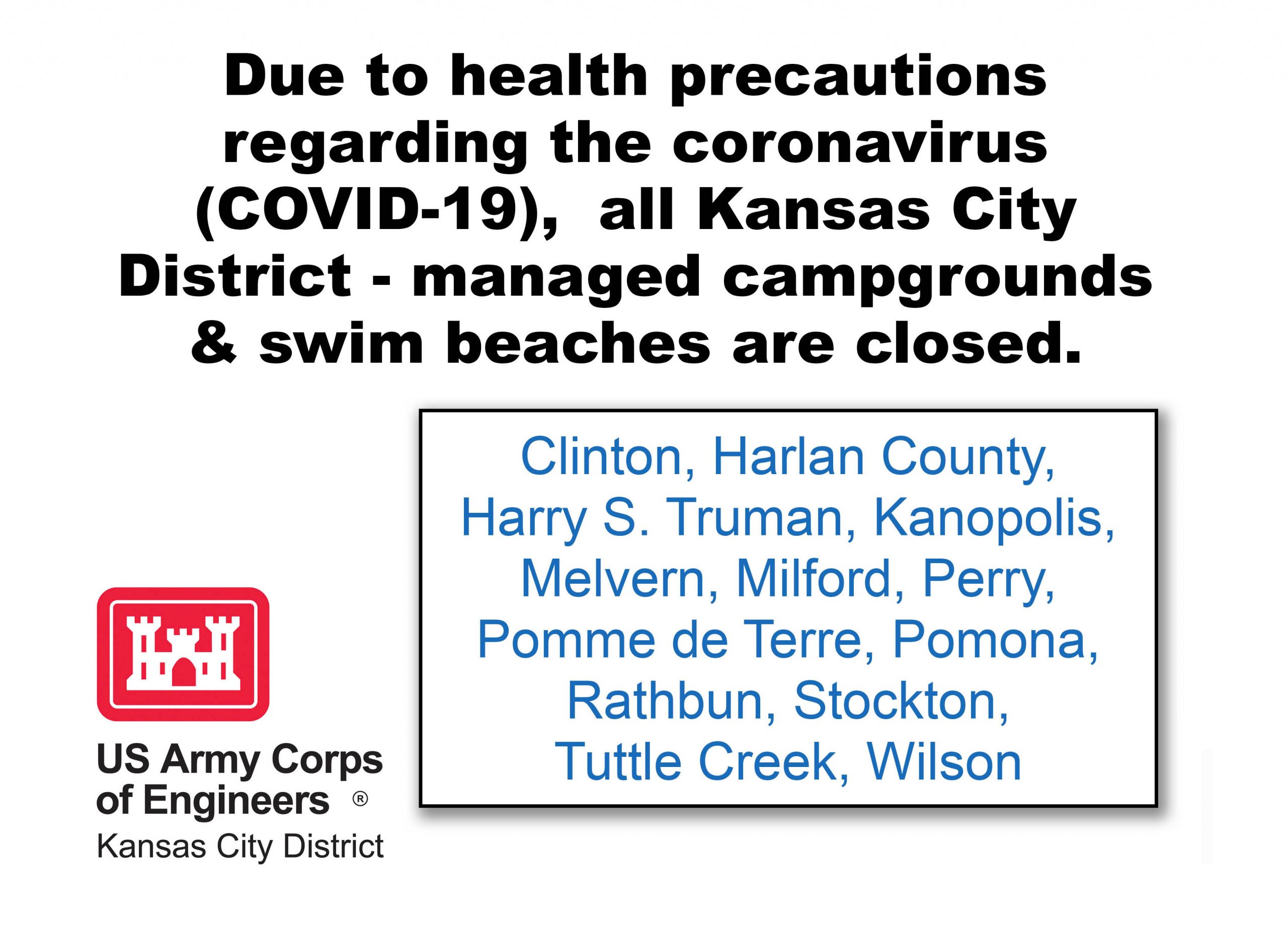 In addition, visitor centers, beaches, special events, and USACE-sponsored events such as shore sweeps, interpretive programs, Kids to Parks, Earth Day events, public meetings and other public gatherings have been closed and/or put on hold until further notice.