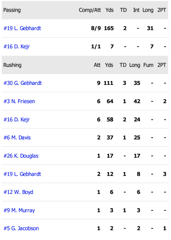 Southeast of Saline defeated Lyons on Friday night by a final score of 94-0. The Trojans utilized many of their sub-varsity players for most of the second half, and ran just six offensive plays in the second half. The Trojans are now 7-0. A statistical recap is below.