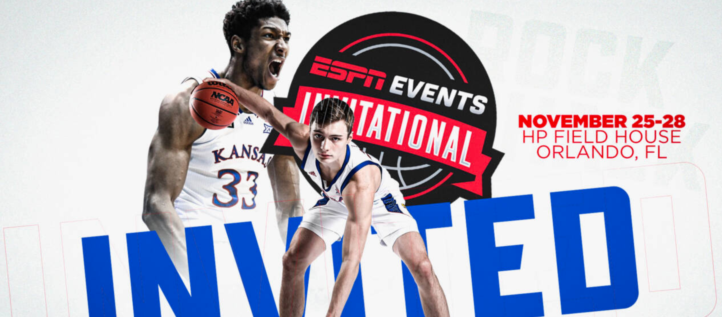 LAWRENCE, Kan. – The Kansas Jayhawks are among the eight-team field to play at the 2021 ESPN Events Invitational, the tournament announced on Thursday. The tournament will be held November 25-28, 2021 at HP Field House at ESPN World of Sports near Orlando, Florida.