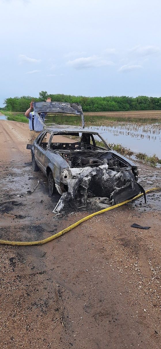 A approximately 10:20 Friday night sheriff deputies were sent to the area of Kipp Rd, and E. Cloud for a vehicle on fire. Upon arrival, they discovered the 1992 Ford Mustang burned up.