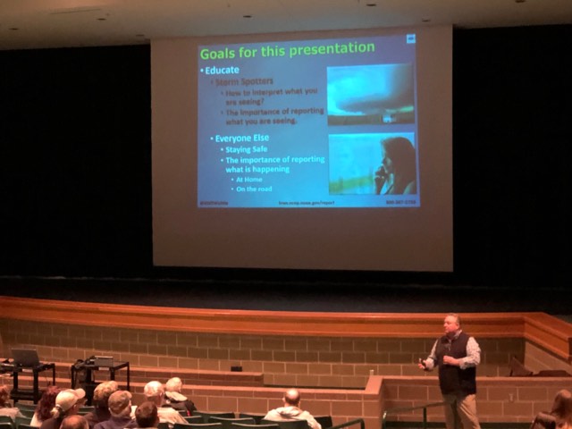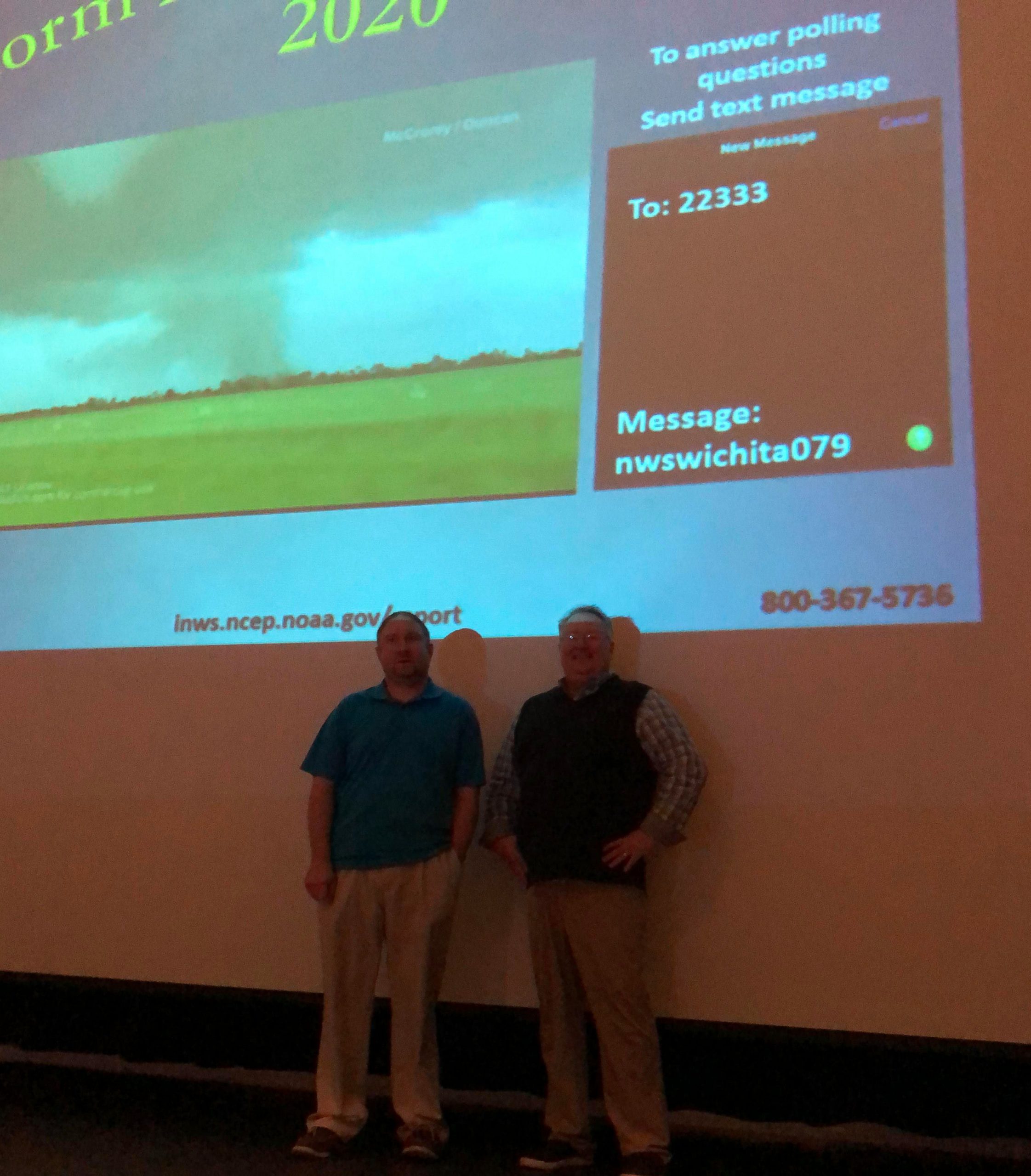 Hayes handled the first part of the presentation, and Lawson handled the second half. The duo used multi-media to teach the basics of thunderstorm development, storm structure, the features to look for, and where to find them. What, when and how to report information as well as basic severe weather safety were also covered.