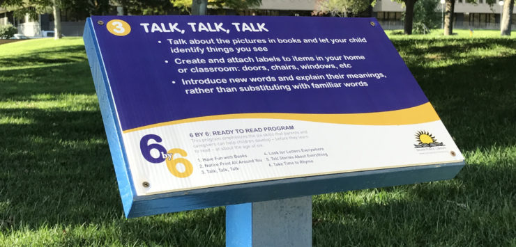 The group installed 6 permanent sign posts on library grounds to encourage families to learn while they are walking near the library.