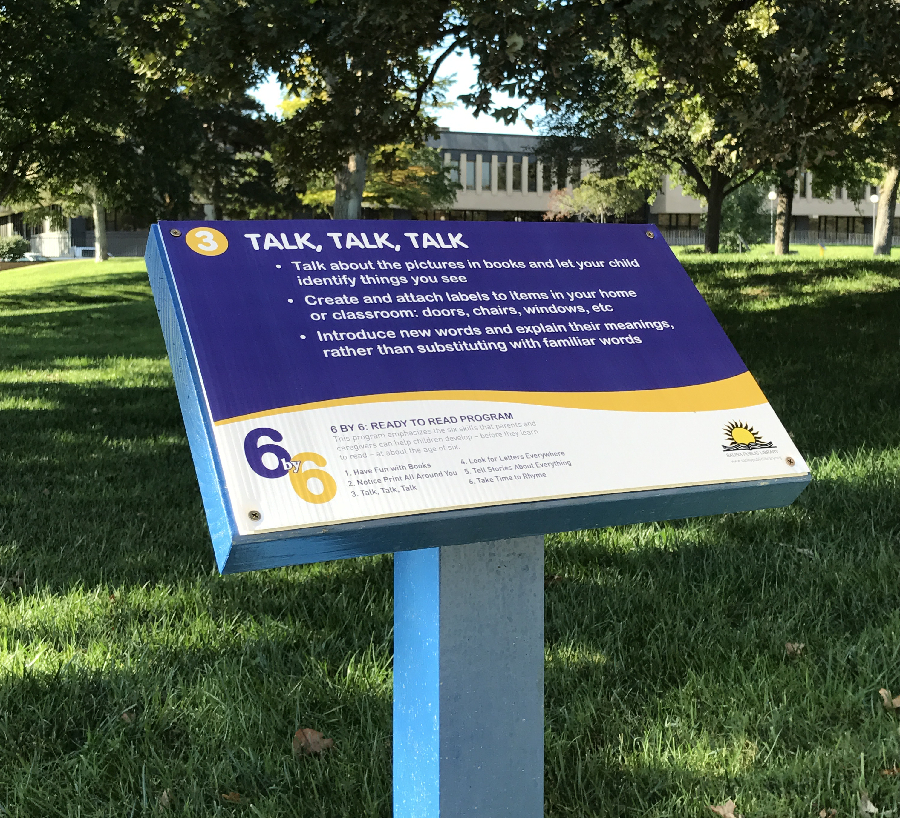 “We chose to bring attention to the “6 by 6 Ready to Read” program and partnered with the Salina Public Library to implement the program,” says Michael Freeland of the project group.