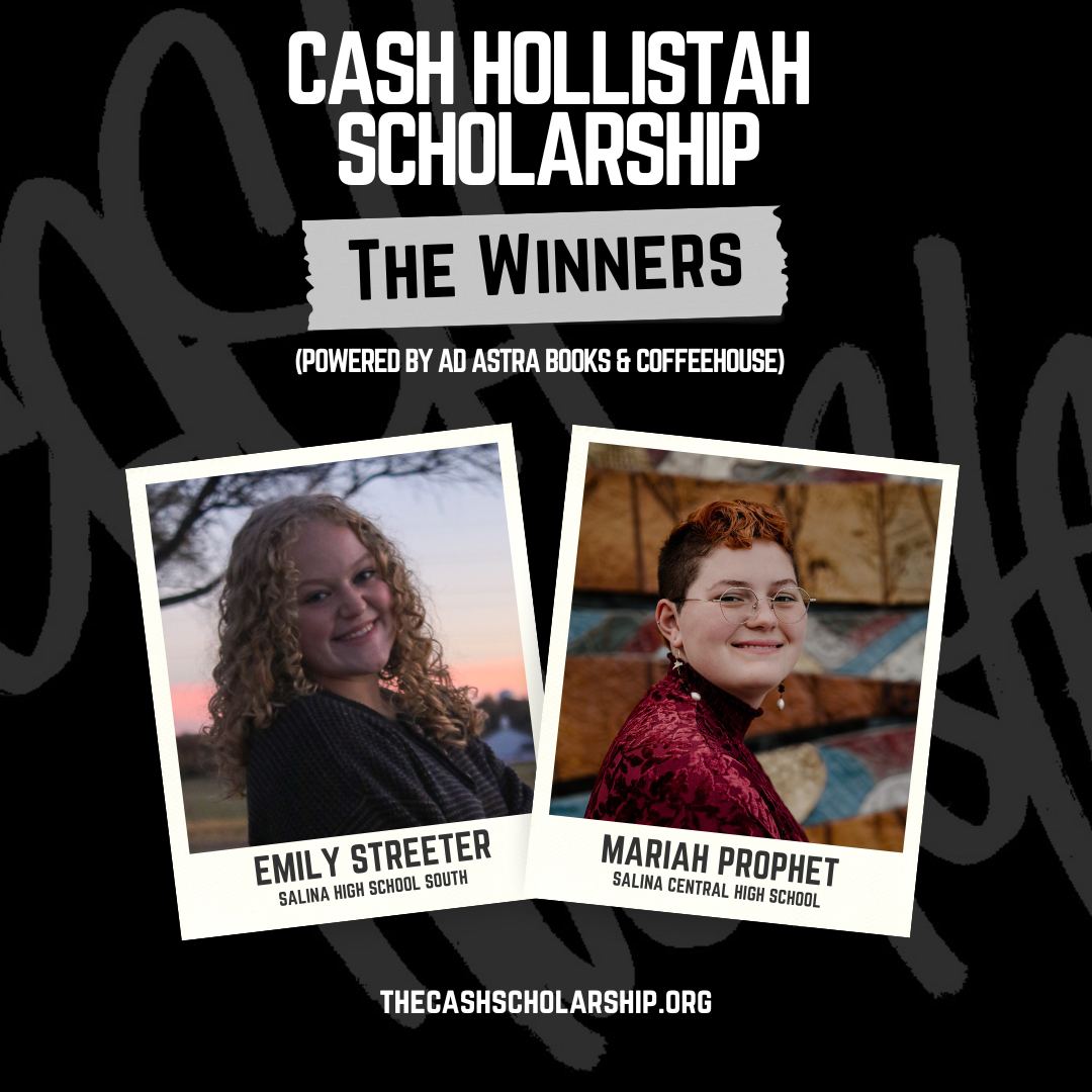 The cash hollistah. scholarship, presented by Ad Astra Books & Coffee House, is awarded to a graduating senior in central Kansas who shows merit in the field of community enrichment through, poetry, music, art or design. For more information, go to thecashscholarship.org