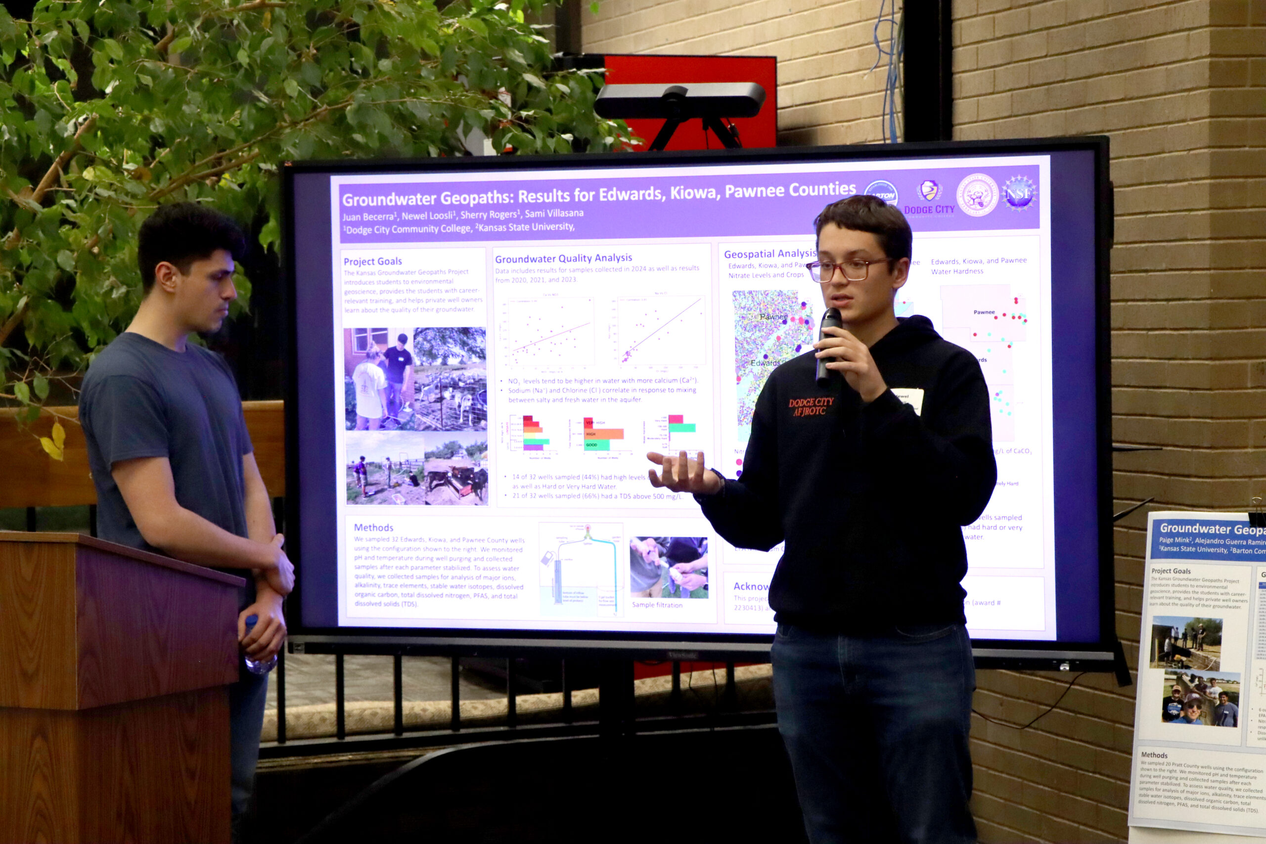 According to the school, the topic was “Groundwater Testing in Southwest Kansas,” and DC3 students participating in the Kansas Groundwater Geopaths program presented the data they had compiled from testing water well contaminates in Pratt, Kiowa, Edwards, Barton, Stafford, and Pawnee counties.