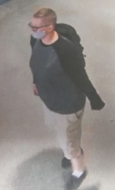 The female appeared to be in her 20-30s and was wearing a mask. She had a short“buzz-cut” hairstyle. The person was wearing a grey long-sleeved shirt with black sleeves, tan knee-length