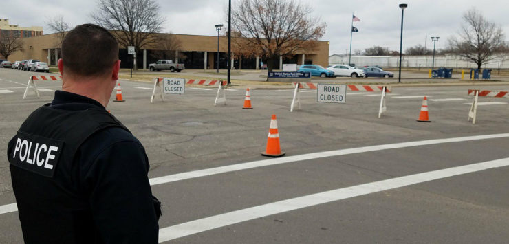 Police Captain Paul Forester told KSAL News at the scene that at around 9:30 in the morning a customer found a suspicious package which had been left in the east end of the lobby area, where the post office boxes are located. The package is addressed to the Salina Police Department.