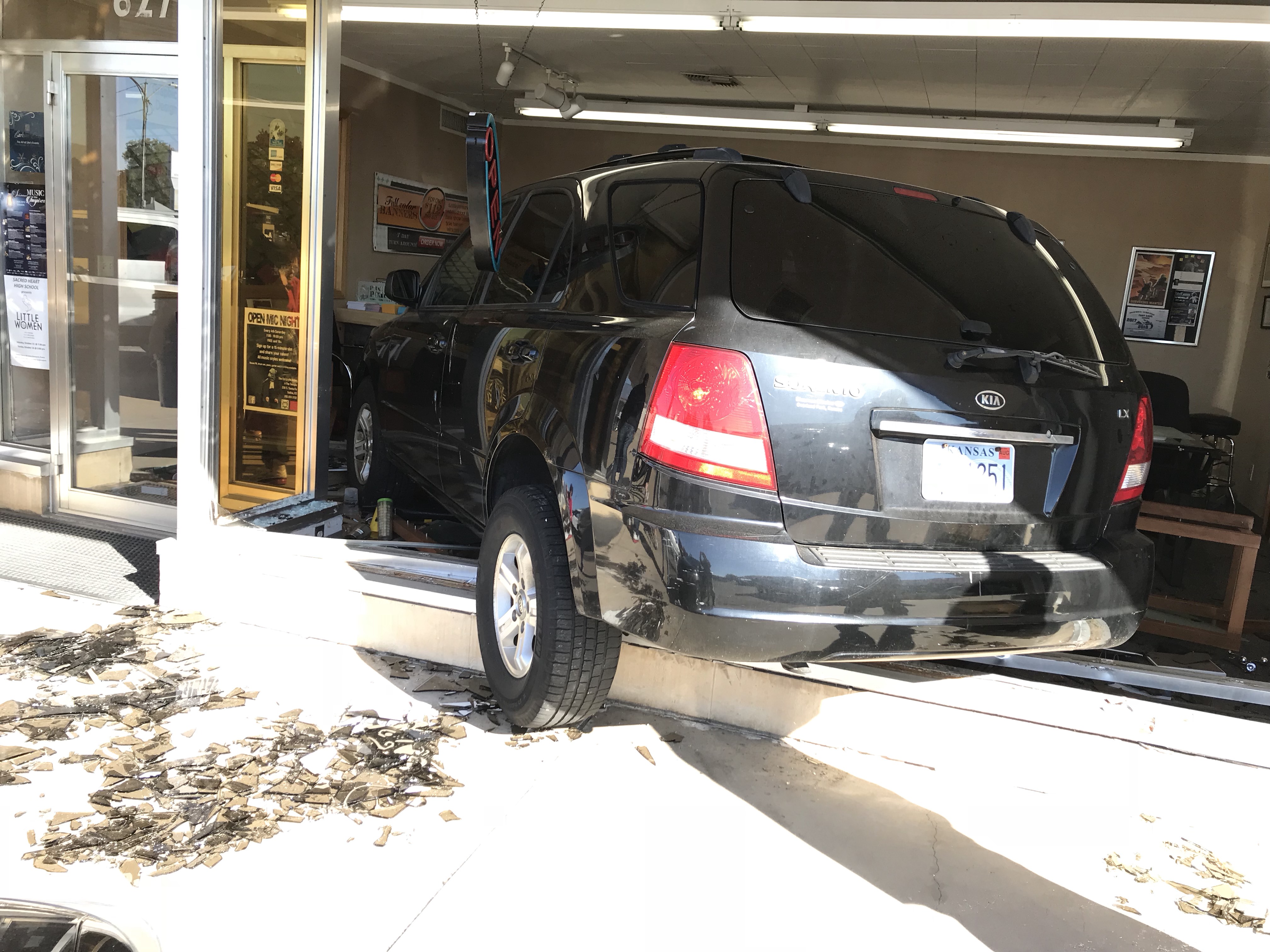 Salina Police Sgt. Brent Rupert told KSAL News at the scene that 69-year-old Beverly Milleson was attempting to pull into a parking spot in front of the business. She became confused and stepped on the accelerator pedal instead of the brake pedal. Her KIA Sorrento slammed into the business.