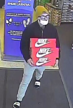 Police say on Wednesday of this week between 3:00 PM and 3:39 PM, a man was in the Shoe Carnival, located at 2584 S. 9thStreet. While there, the male subject stole three pair of sports shoes valued at $215.00.