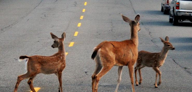 Deer usually travel in groups. When one deer crosses the road, there may be others about to cross. Slow down and watch for others to dart into the road.