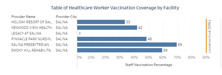 The state’s newly launched dashboard extrapolates data specific to Kansas from the CDC’s National Healthcare Safety Network COVID-19 Long Term Care Facility Module and provides a view of the healthcare personnel vaccination rates for Kansas’s federally licensed LTCFs.