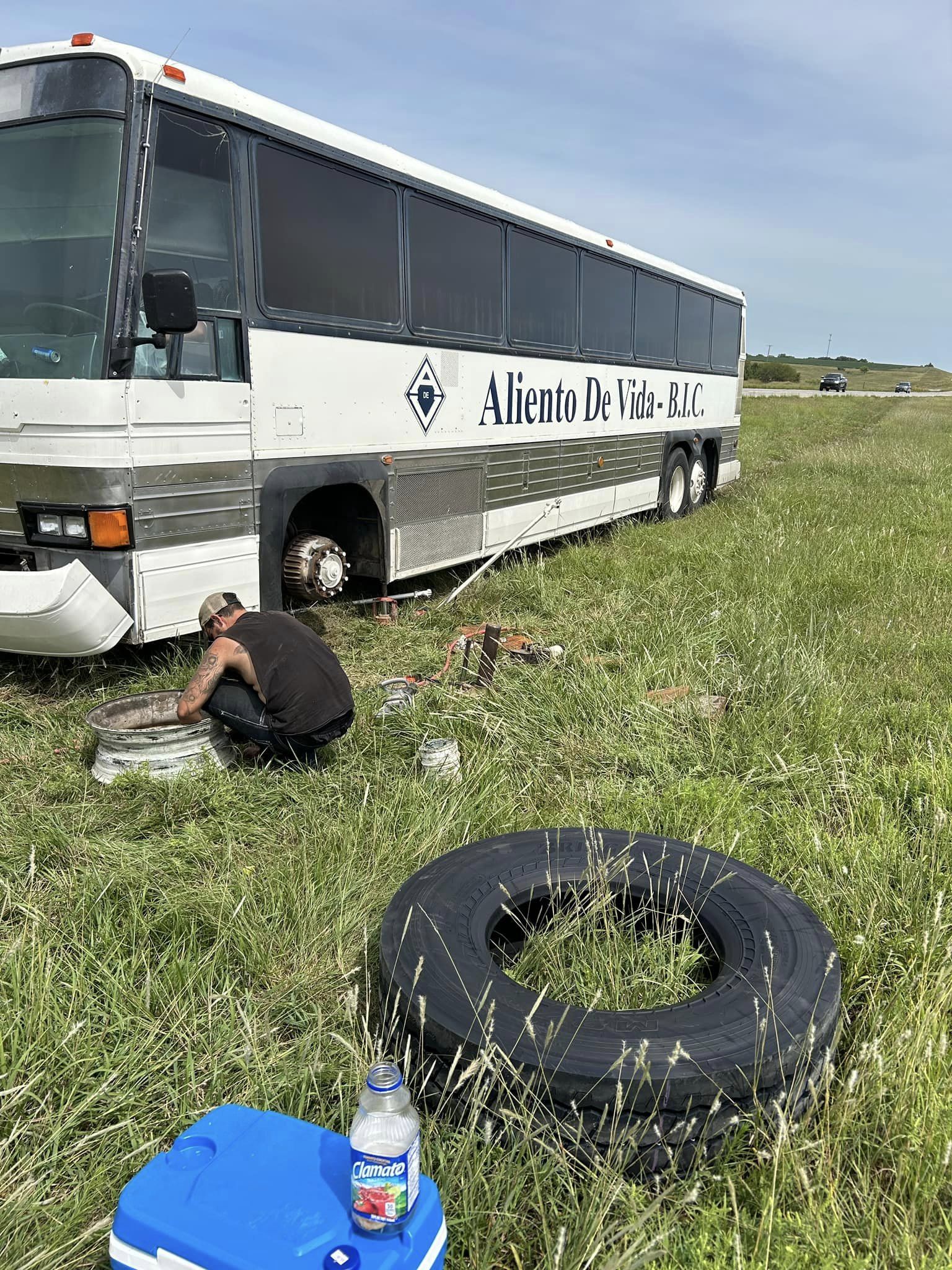 Despite calls to several wreckers, no one had the equipment to tow the bus. Trooper Mullins advised the group to arrange rides for the passengers and reached out to Don’s Tire in Abilene.