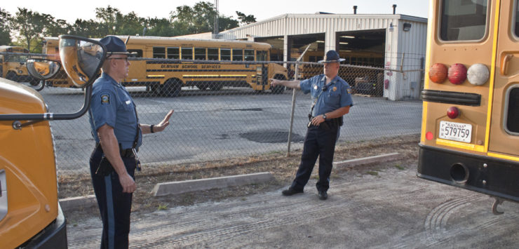 Troopers will check the buses from the middle of July until the beginning of the school session to make sure the vehicles will load, transport, and unload students safely. A few of the things troopers will be checking are the lights, emergency exits, tires, windshield wipers, fire extinguishers, first aid kits, and emergency spill kits.