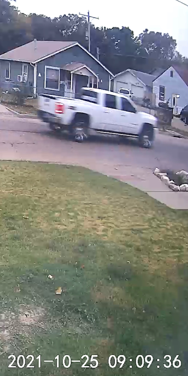 Police describe the truck as having a six-inch lift, wide low-profile tires, white lettering on the back window and a loud exhaust.