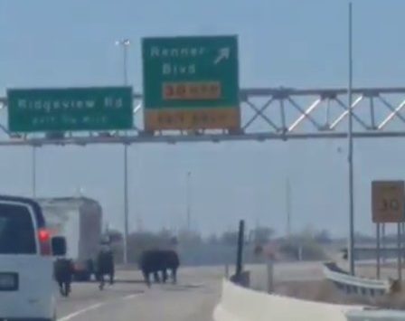 The transportation department was warning motorists avoid the area while law enforcement herds “them thar pesky cows.” The ramps were expected to be closed for several hours.