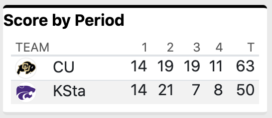 In the fourth quarter, Kansas State gave one last run at it, holding Colorado without a point for the first 6:19 of the period, but all K-State could muster was to whittle the lead down to six. The Buffaloes would then hold serve defensively in the final minutes, and make most of their free throws to ice the victory.