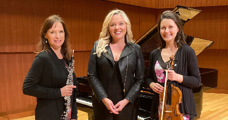 The NAVO Trio is composed of oboist Margaret Marco, professor of music; pianist Ellen Sommer, associate professor of the practice at KU; and violinist and former KU faculty member Véronique Mathieu, who now holds the David L. Kaplan Chair in Music at the University of Saskatchewan.