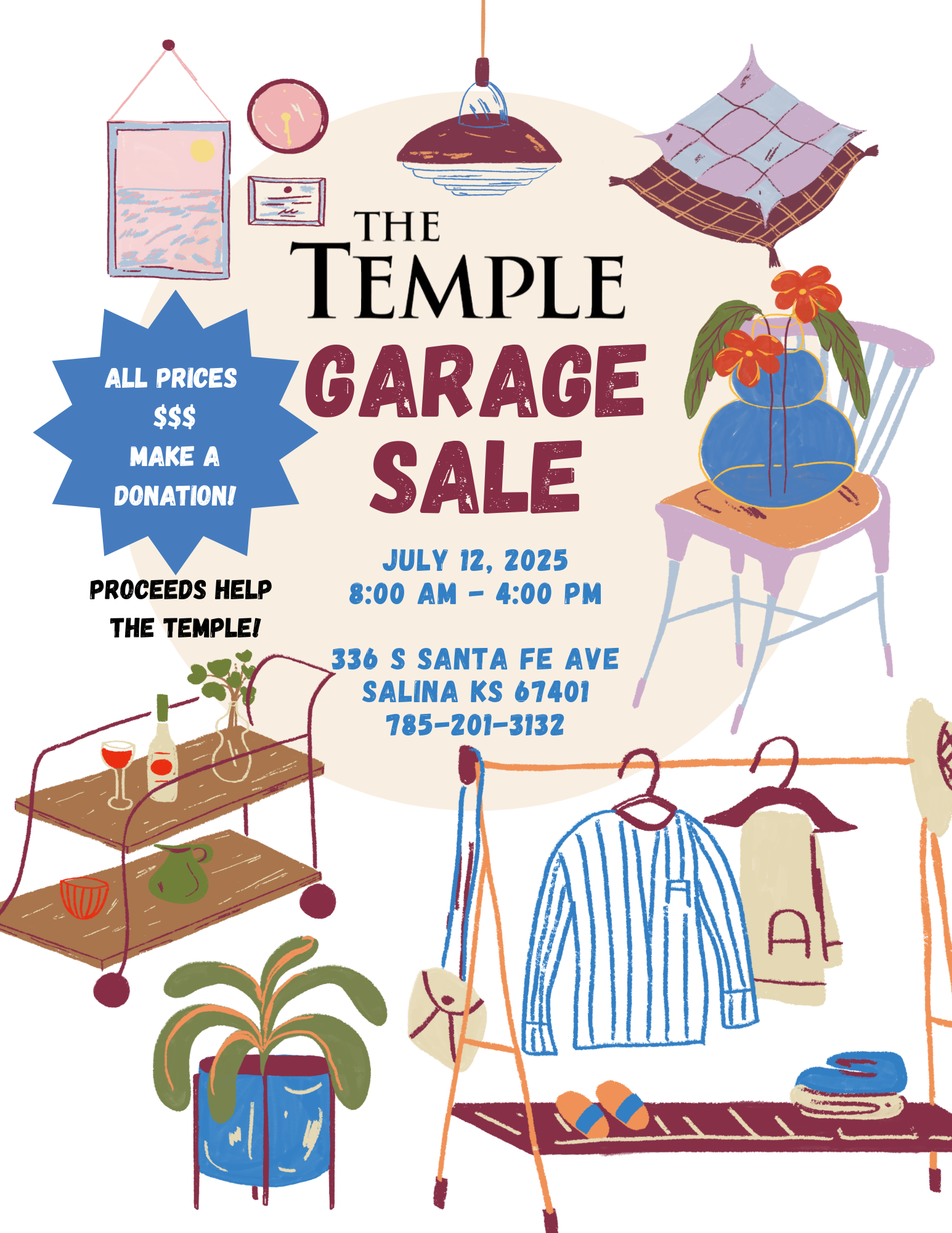 The Temple’s garage sale is this Saturday, July 12th, from 8:00 AM to 4:00 PM on the lower level.