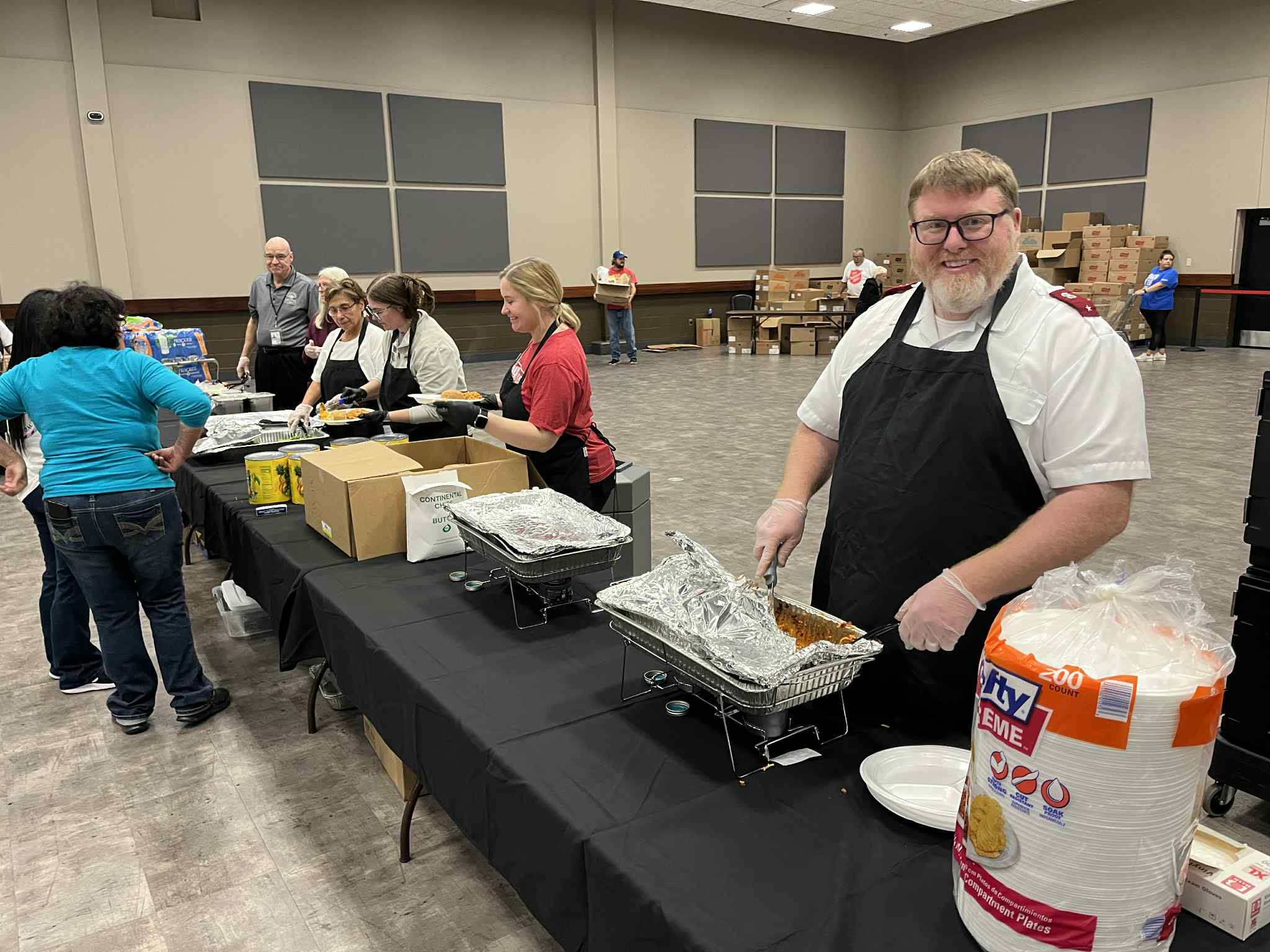 The Salina Salvation Arm provided a hot spaghetti meal to the first 300 people. Longhorn Steakhouse provide the bread and salad, and the Salina Emergency Aid Food Bank provided the dessert.