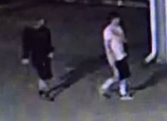 The second subject was wearing a black hooded sweatshirt and black shorts. The person’s hair appeared to be lighter and shoulder length.