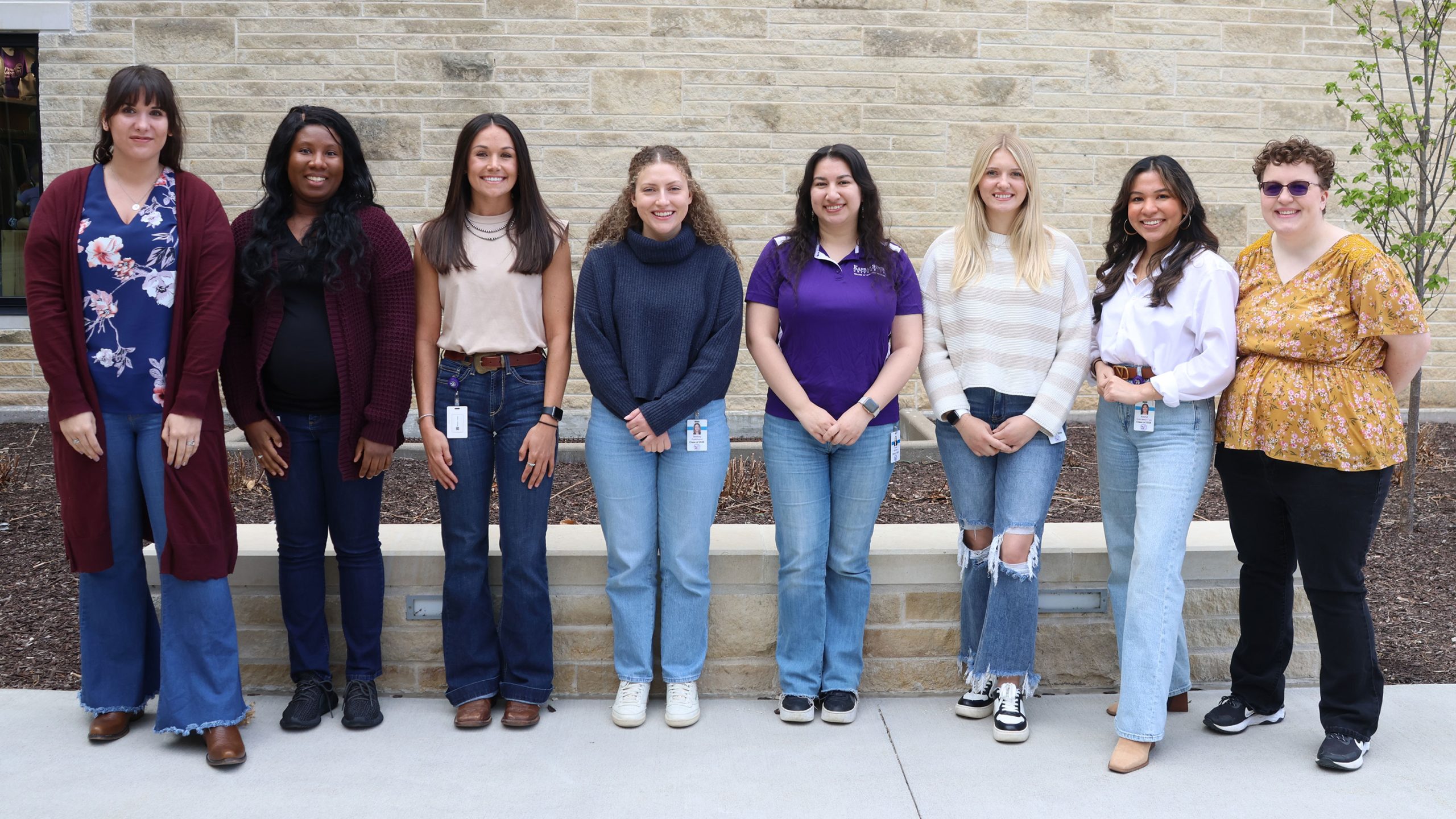 Photo via K-State: Eight K-State College of Veterinary Medicine students are receiving 2024 Zoetis Foundation/AAVMC scholarships. From left: Cayley Conrad, Traniesh Byrd, Chelsey Bieberle, Destiny Parkhurst, Sonia Moreno, Alyssa Leslie, Astrid Carcamo-Tzic and Megan Mueller.