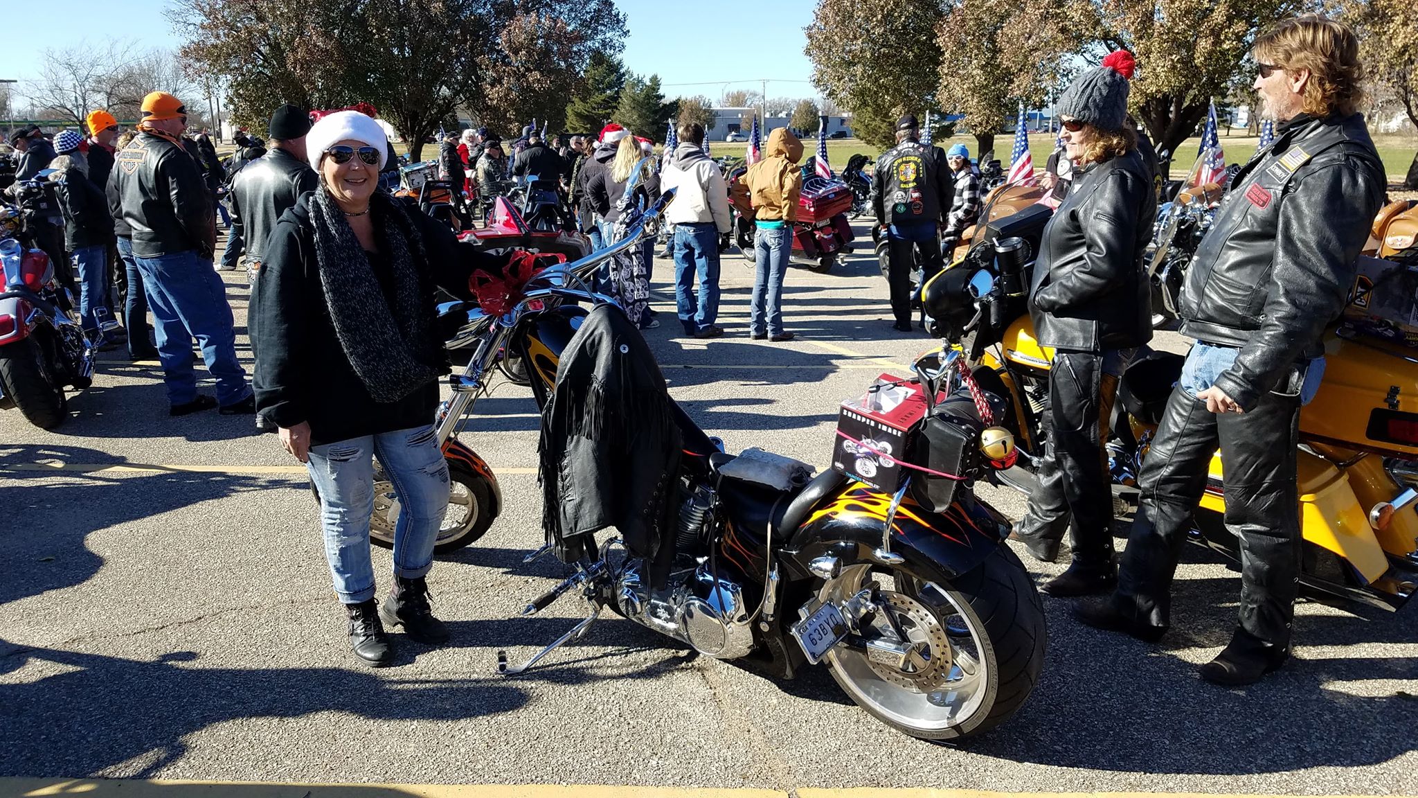 After parading across and around town, the procession stopped at the Emmanuel Foursquare Church to drop off toys. They then headed to Harley Davidson Salina for a chili feed.